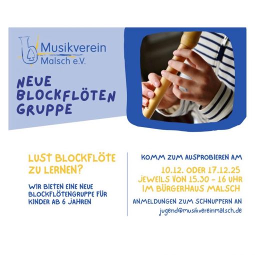 Du hast Lust, Blockflöte zu lernen? Dann bist du bei uns genau richtig. Wir starten eine neue Blockflötengruppe ab 6 Jahren und freuen uns, wenn DU dabei bist! Komm gerne zum Ausprobieren vorbei am 10.12.25 oder 17.12.25 jeweils von 15.30 […]