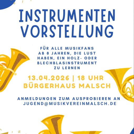 Für alle Musikfans ab 8 Jahren, die Lust haben, ein Holz- oder Blechblasinstrument zu lernen! Wann: Montag, 13.April 2026, 18.00 Uhr Wo: Bürgerhaus Malsch An diesem Abend hast Du die Möglichkeit, Instrumente auszuprobieren, Fragen zu stellen und vielleicht auch schon […]